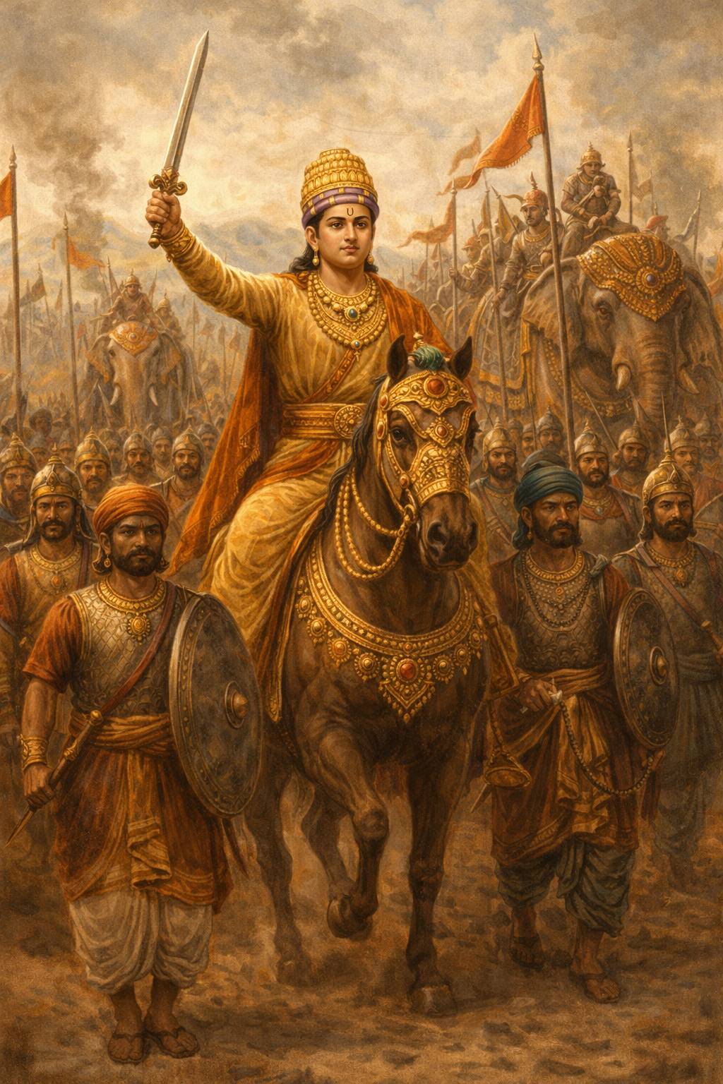 With internal stability achieved, Pulakesin II launched a series of military campaigns that expanded his empire across the Deccan. He defeated the Kadambas of Banavasi, annexed their territory, and redistributed it among loyal allies. He secured the submission of the Western Ganga dynasty through both power and diplomacy, even forming matrimonial alliances to strengthen ties. His campaign against the Mauryas of Konkan further established Chalukya dominance along the western coast, ensuring control over important trade routes. These early victories transformed him into the paramount ruler of the western Deccan and set the stage for even greater achievements.